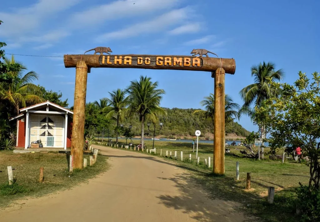 A Ilha do Gambá fica localizada antes da Praia de Acaiaca, entre a foz do rio e o famoso lameirão — a areia monazítica escura, muito conhecida por suas propriedades terapêuticas. A ilha é ligada ao continente por um istmo artificial e, segundo informações locais, é uma das regiões com maior qualidade de algas marinhas do Brasil.
