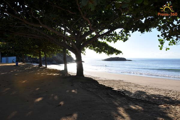 O visual da praia impressiona por combinar um clima paradisíaco com uma pegada mais selvagem. Castanheiras, coqueiros e a mata nativa de restinga contornam praticamente toda a orla, criando um ambiente perfeito para relaxar, contemplar e se desconectar da correria do dia a dia. As extremidades são marcadas por costões rochosos, que completam o charme natural e oferecem ótimos pontos para apreciar a paisagem.