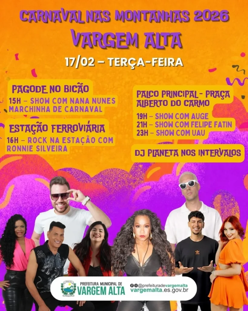 O Carnaval das Montanhas 2026 promete transformar Vargem Alta, no Espírito Santo, em um grande palco de celebração, cultura e diversão. Com uma programação especial preparada para todos os públicos, o evento reúne música, tradição e muita animação, consolidando-se como um dos carnavais mais charmosos da região serrana capixaba.