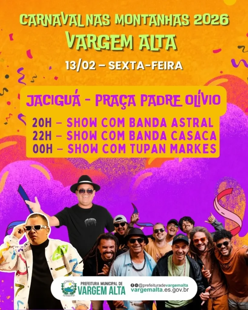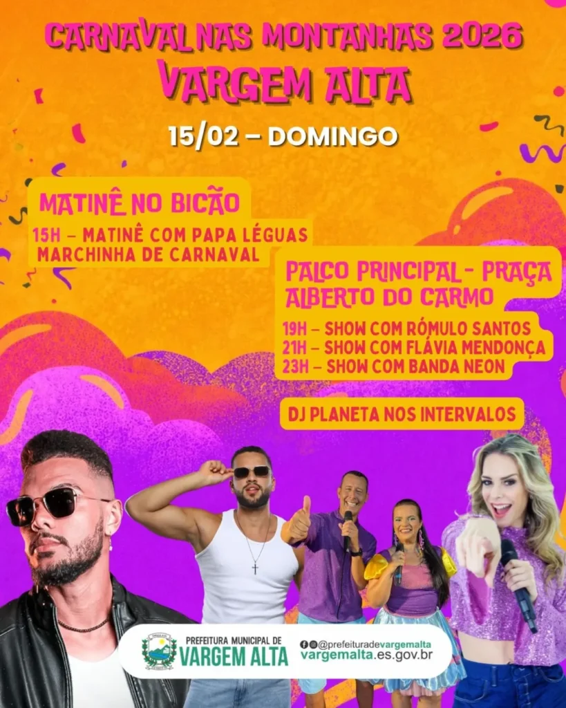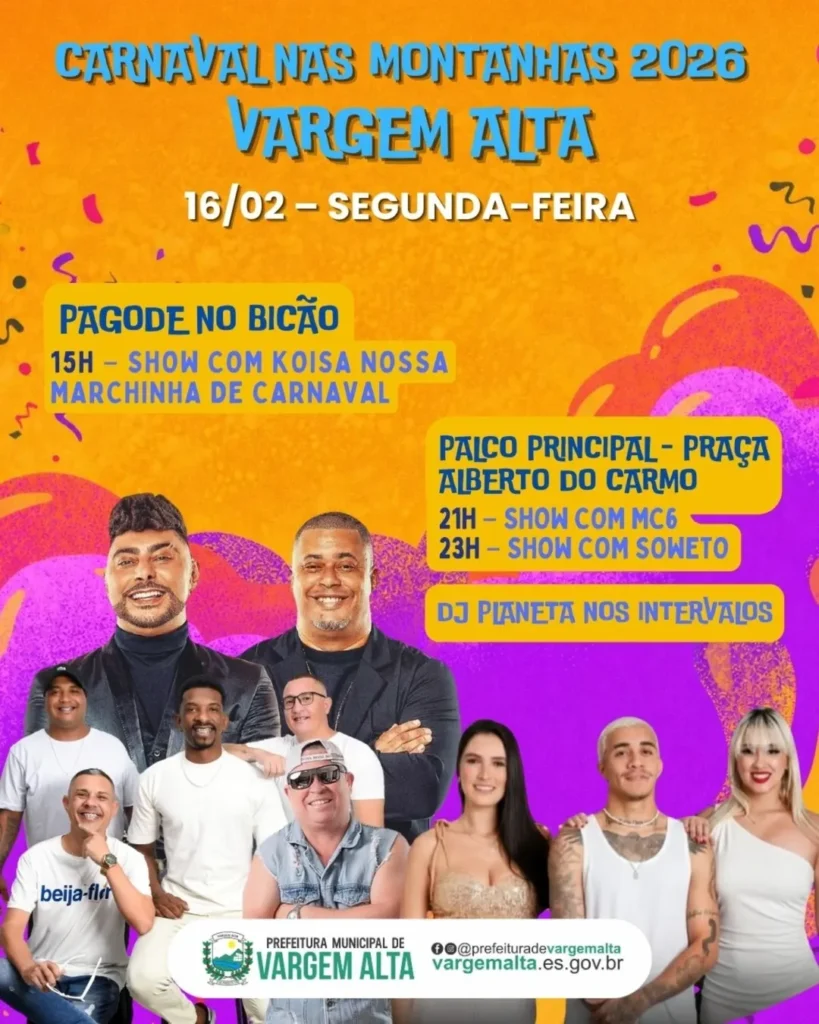 O Carnaval das Montanhas 2026 promete transformar Vargem Alta, no Espírito Santo, em um grande palco de celebração, cultura e diversão. Com uma programação especial preparada para todos os públicos, o evento reúne música, tradição e muita animação, consolidando-se como um dos carnavais mais charmosos da região serrana capixaba.