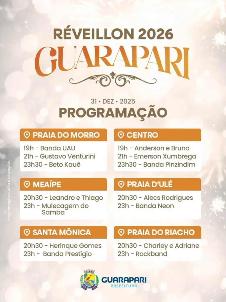 Réveillon Guarapari 2026: programação completa do maior show da virada no Espírito Santo