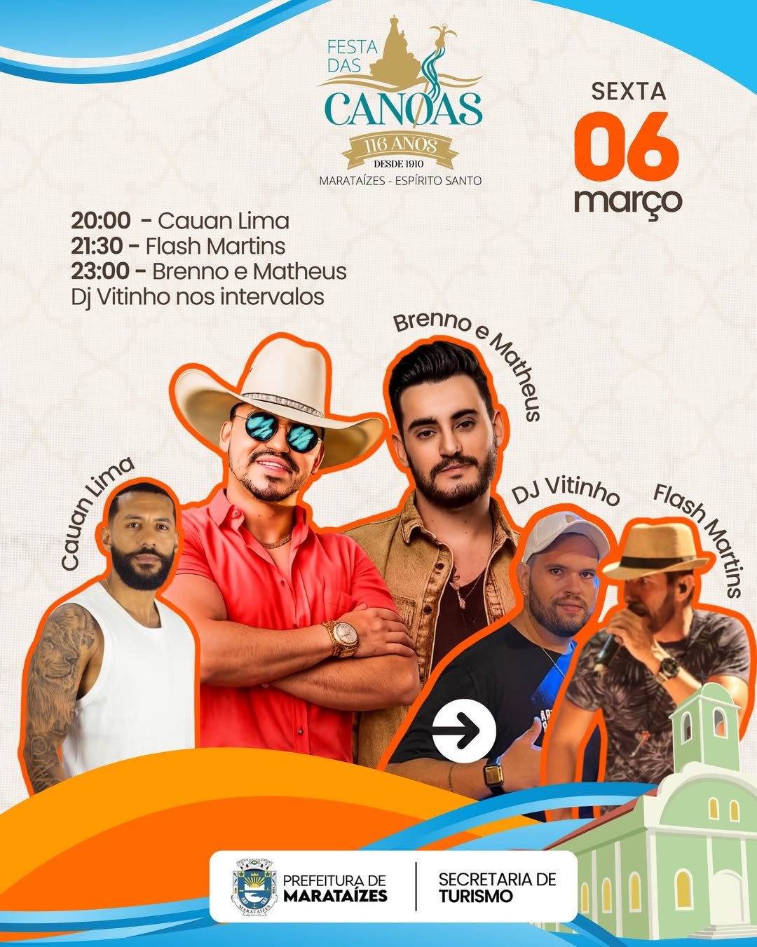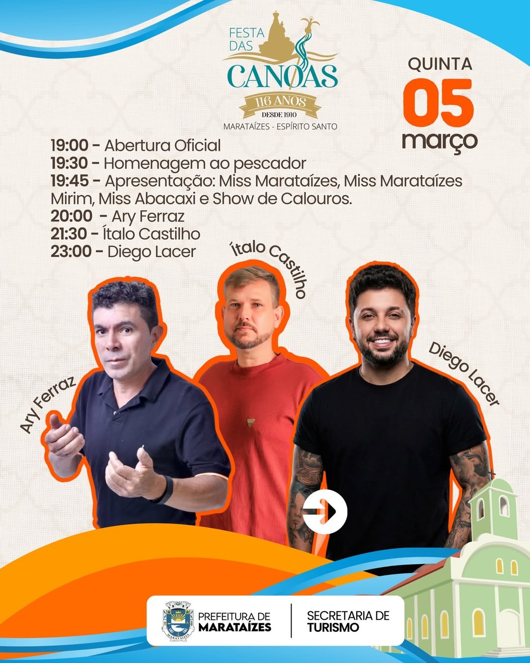 A Festa das Canoas 2026 promete movimentar Marataízes entre os dias 05 e 08 de março com uma programação especial que celebra cultura, tradição, música e fé. A Festa das Canoas 2026 é um dos eventos mais aguardados do município, reunindo moradores e visitantes em quatro dias de muita animação e valorização da história local.