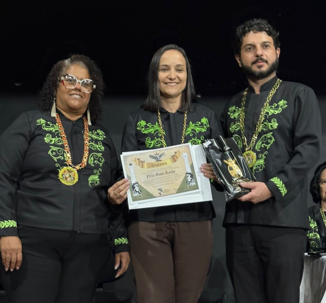 Um dos momentos mais simbólicos da noite foi a entrega da espada acadêmica à nova integrante, realizada pela decana Orlandina. O gesto representa a defesa permanente da cultura, da literatura e das artes, simbolizando honra, resistência e compromisso institucional.