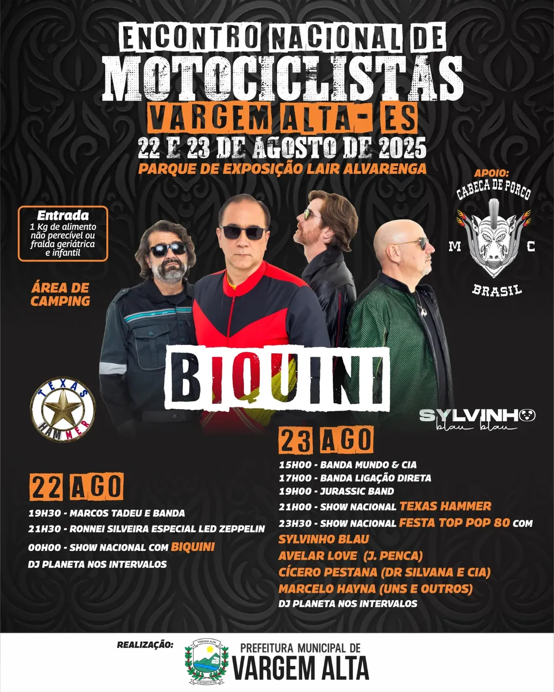 Prepare-se para um dos maiores eventos de duas rodas do Espírito Santo! Nos dias 22 e 23 de agosto de 2025, Vargem Alta-ES será palco de muita música, gastronomia, amizade e adrenalina.