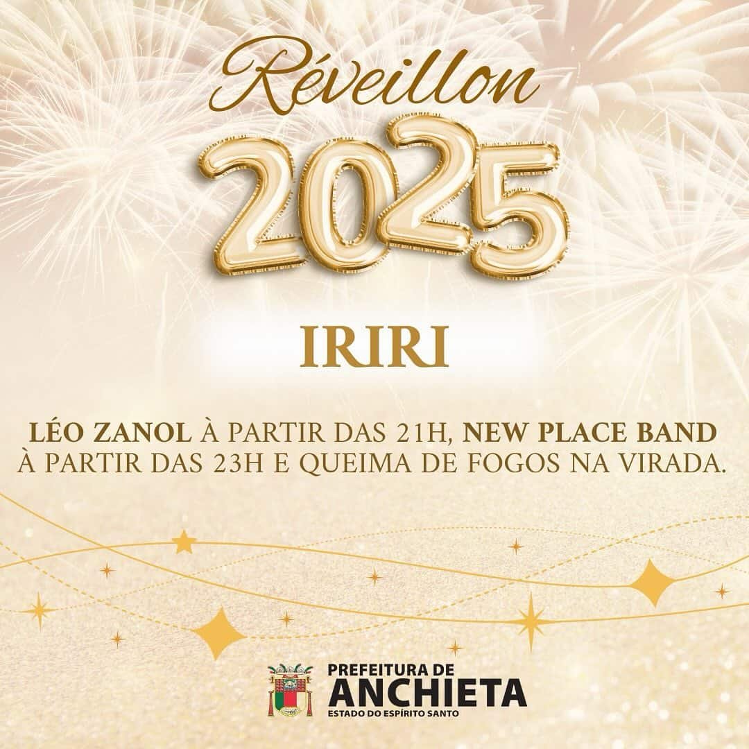 Venha viver uma virada de ano cheia de alegria, música ao vivo e um show de fogos! Anchieta e Iriri esperam por você para começar 2025 com o pé direito. Não perca essa festa única!